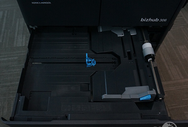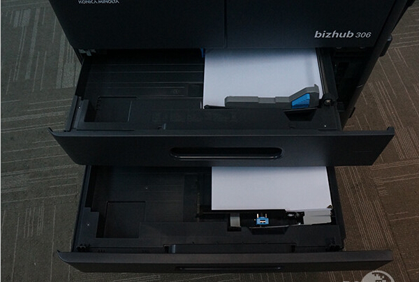 其實柯尼卡美能達306在出廠的時候僅僅是做為一款桌面級的復(fù)合機而使用,它只標配了一個進紙盒,標配的進紙盒容量為250張,并且支持紙張的尺寸為A3到A5。